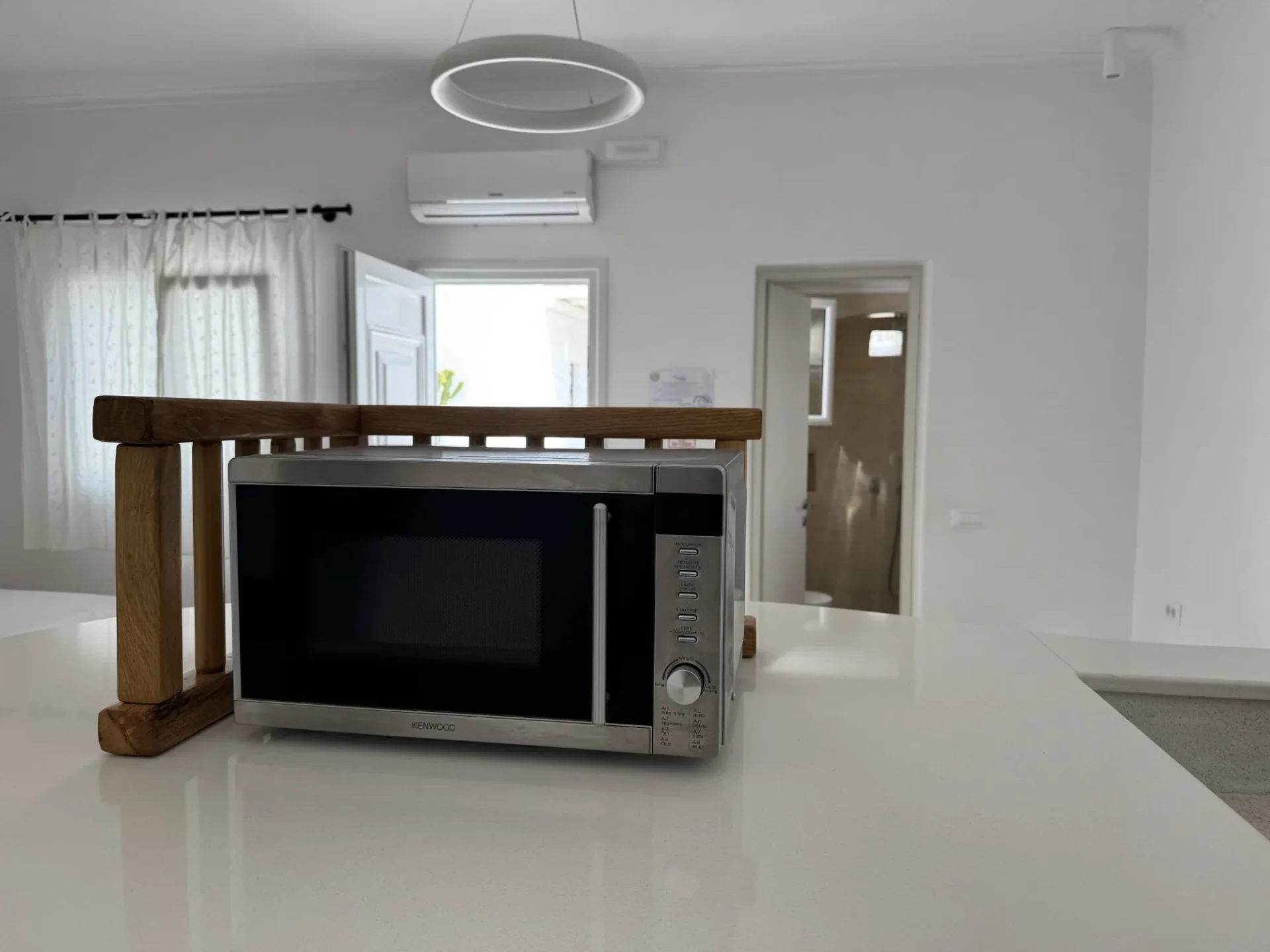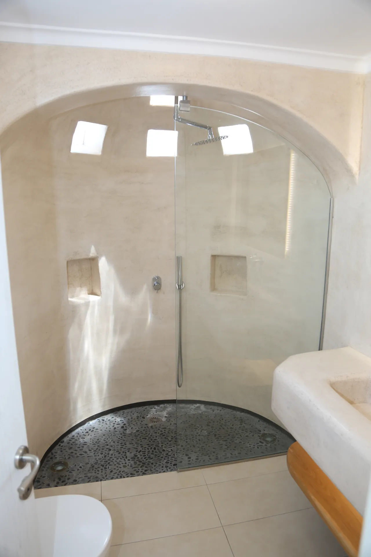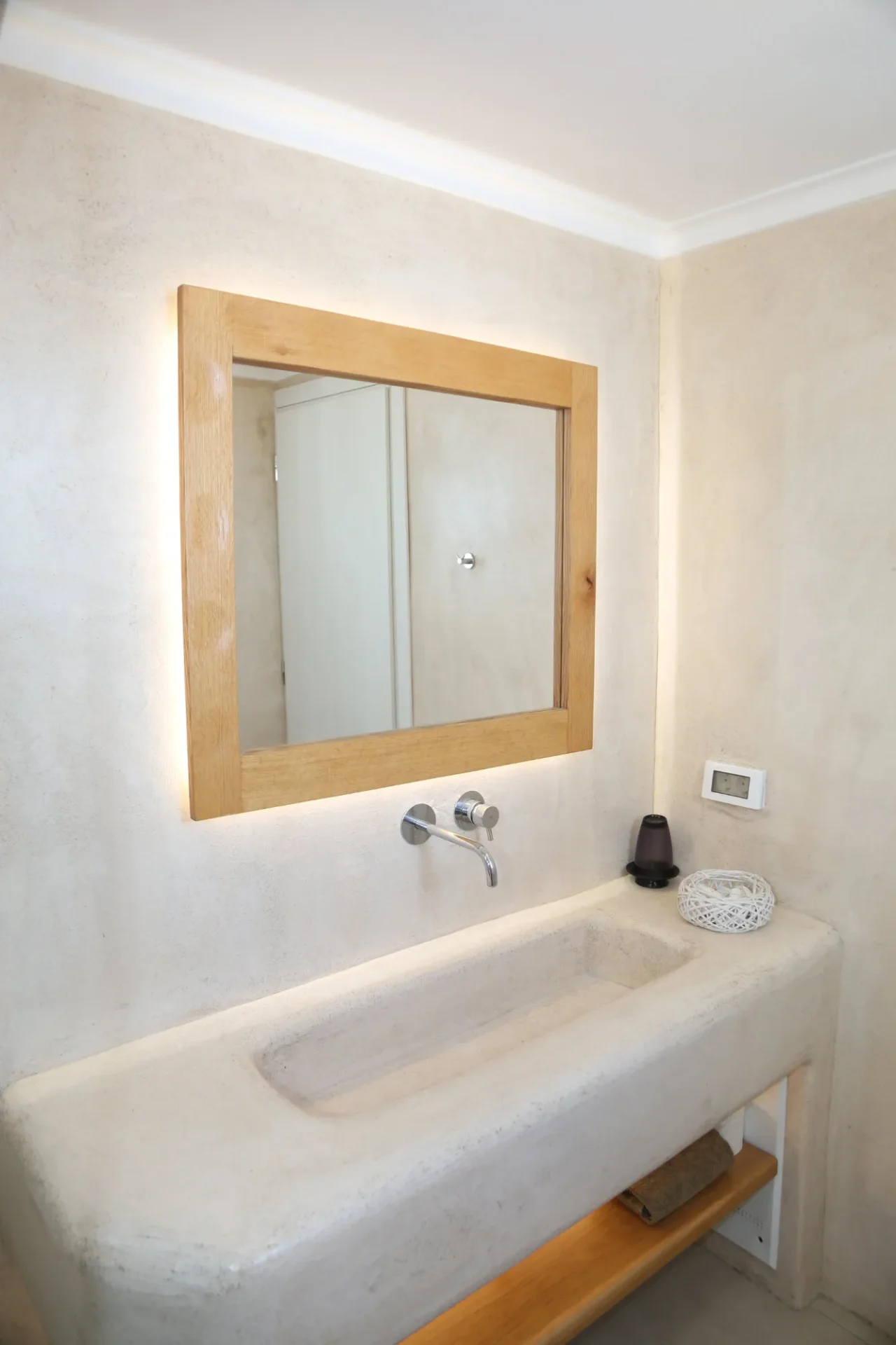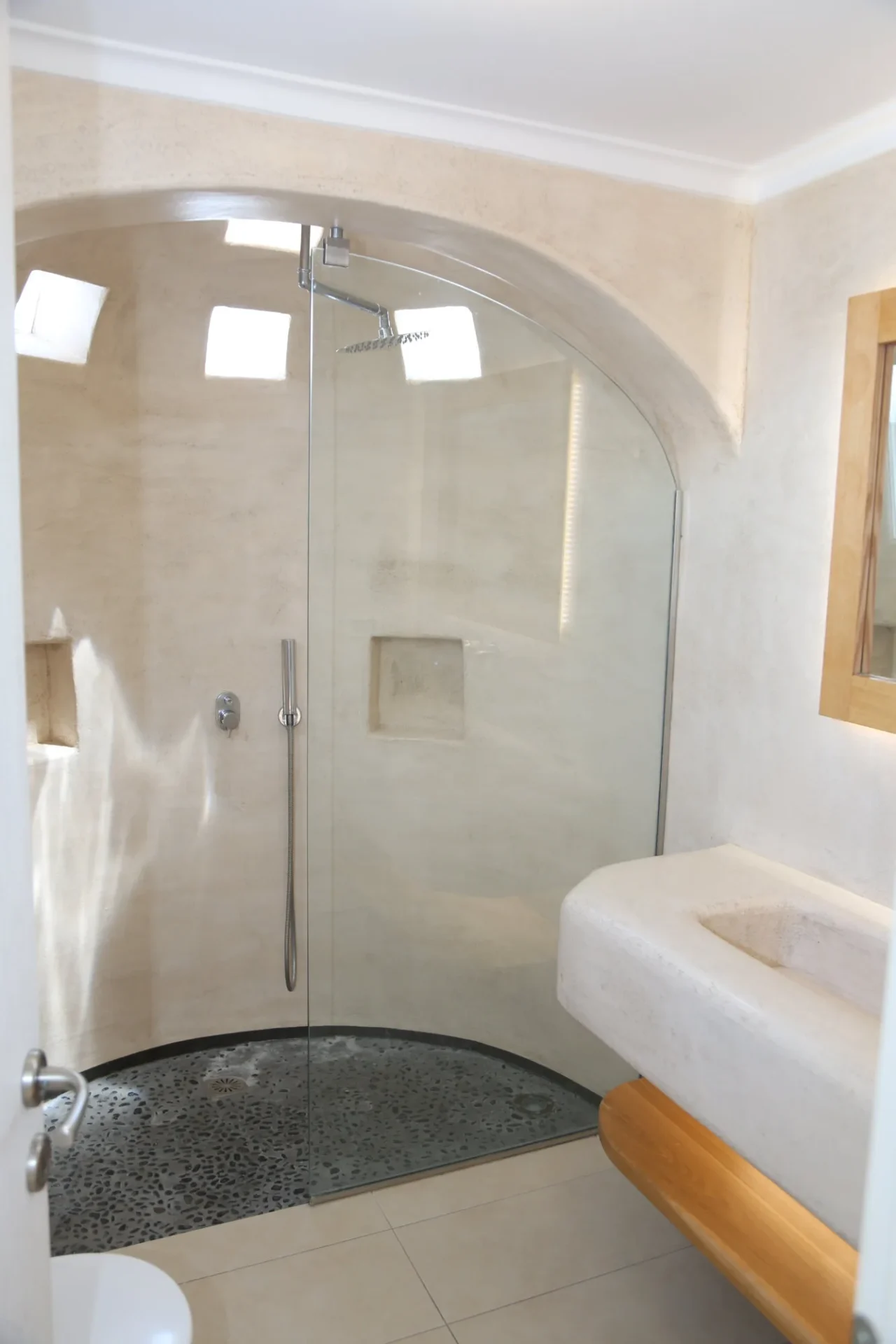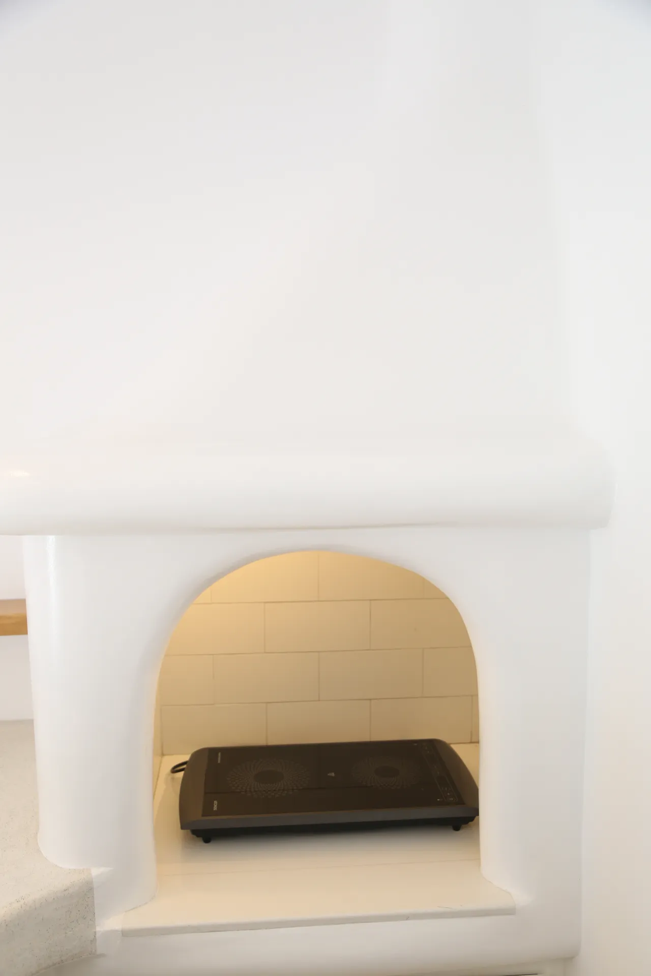 This single space studio (35 m²) represents a successful architectural fusion of traditional and modern elements. It features a double bed, two single beds, and a built-in sofa bed, as well as a fully equipped kitchen with utensils, a refrigerator, a coffee maker, a microwave, air conditioning, and a flat-screen smart TV. The most striking design element is the bathroom, with its distinctive dome, tiered flooring, separate wooden fixtures, and concealed lighting. The outdoor terrace, with its built-in benches and garden views, is ideal for breakfast, lunch, or dinner. Enjoy a wonderful stay. Experience traditional hospitality at Anais's. The Deluxe quintuple studio can accommodate up to 5 people.